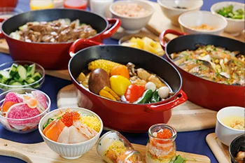 北海道の旬食材を活かしたバラエティ豊かな和洋ビュッフェ。