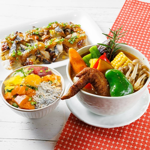 海の幸を手軽に味わう海鮮丼や彩り豊かなスープカレーが人気。