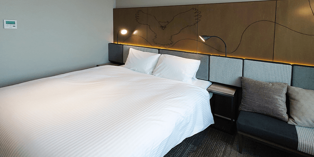 広々とした160cm幅のベッドが、快適な睡眠をお約束いたします。ベッド下スペースにスーツケース等の収納も可能です。